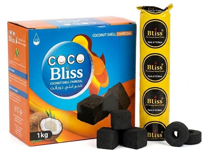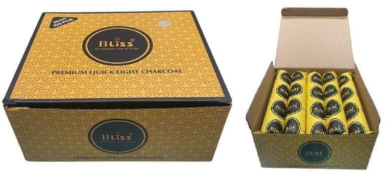 Bliss Coconut Shell Charcoal: Eco-friendly, long-burning cubes for extended sessions.